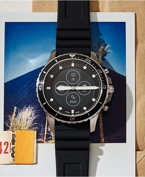 Fossil Men S Fb 01 Hr Black Silicone Strap Hybrid Smart Watch 42mm
