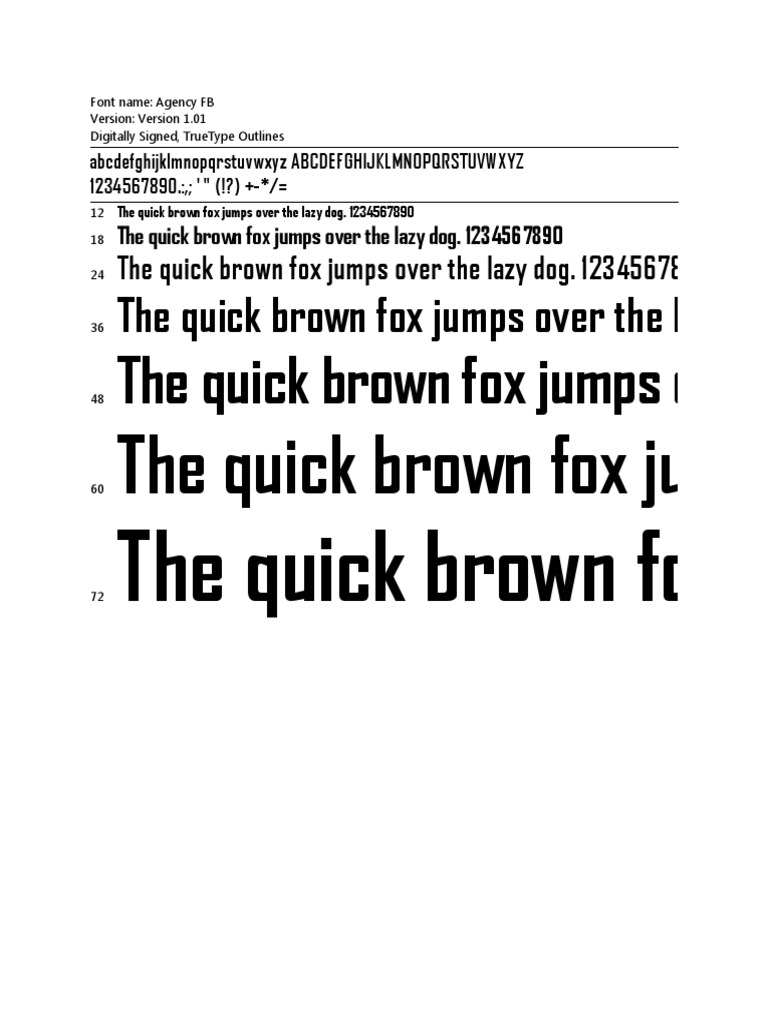 Agency Fb Bold Truetype Computer File Formats Typefaces
