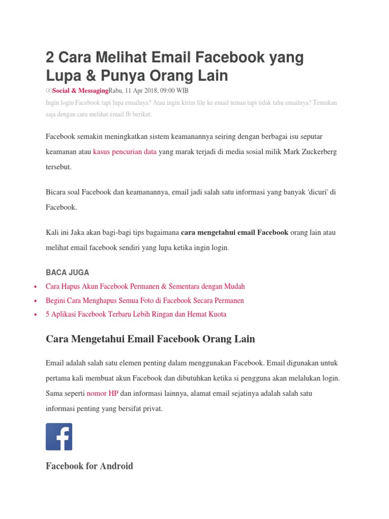 Cara Melihat Email Facebook Sendiri Di Hp Musdeoranje Net